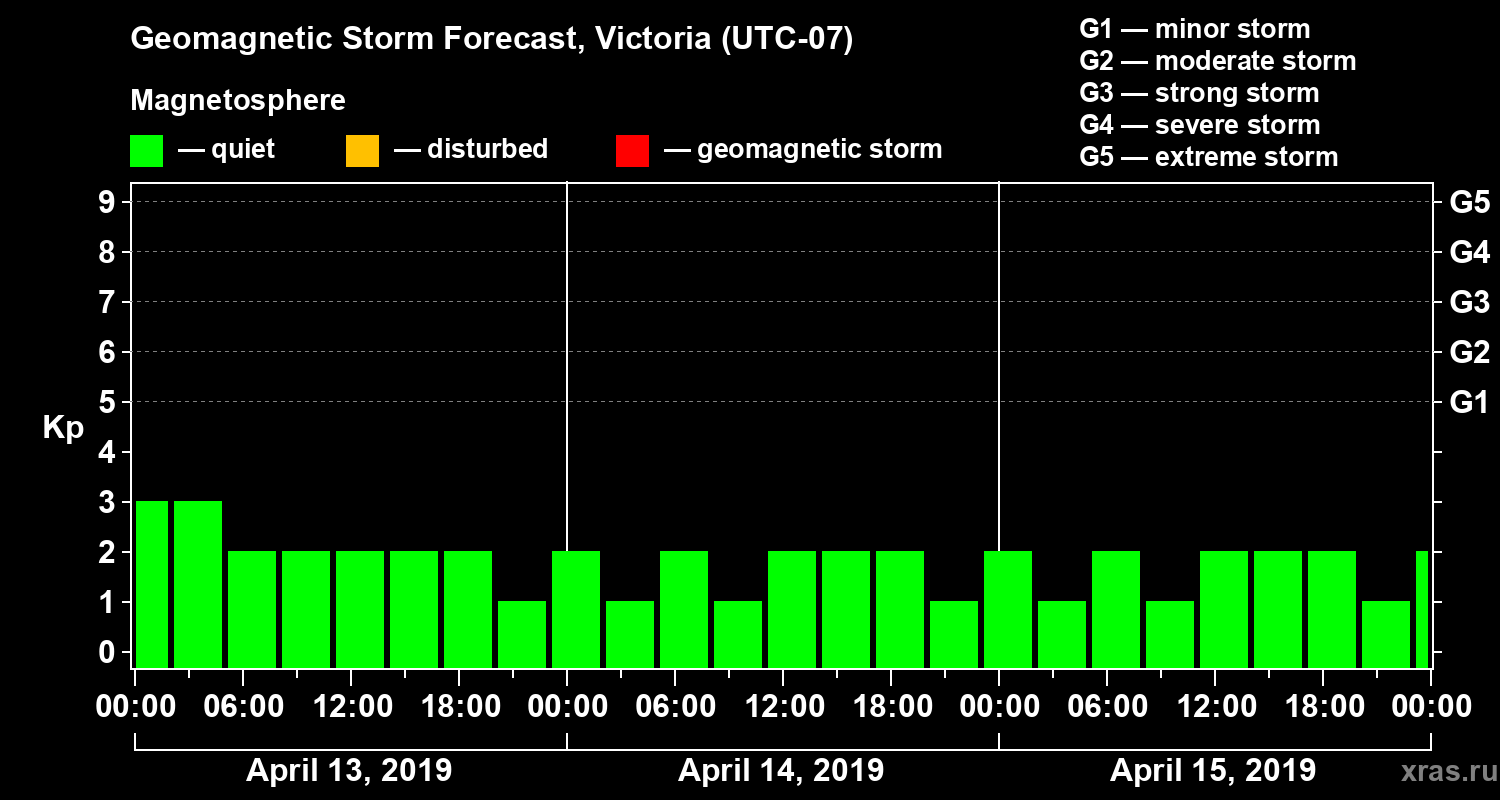 Geomagnetic storm forecast in Victoria for Apr 13, 2019