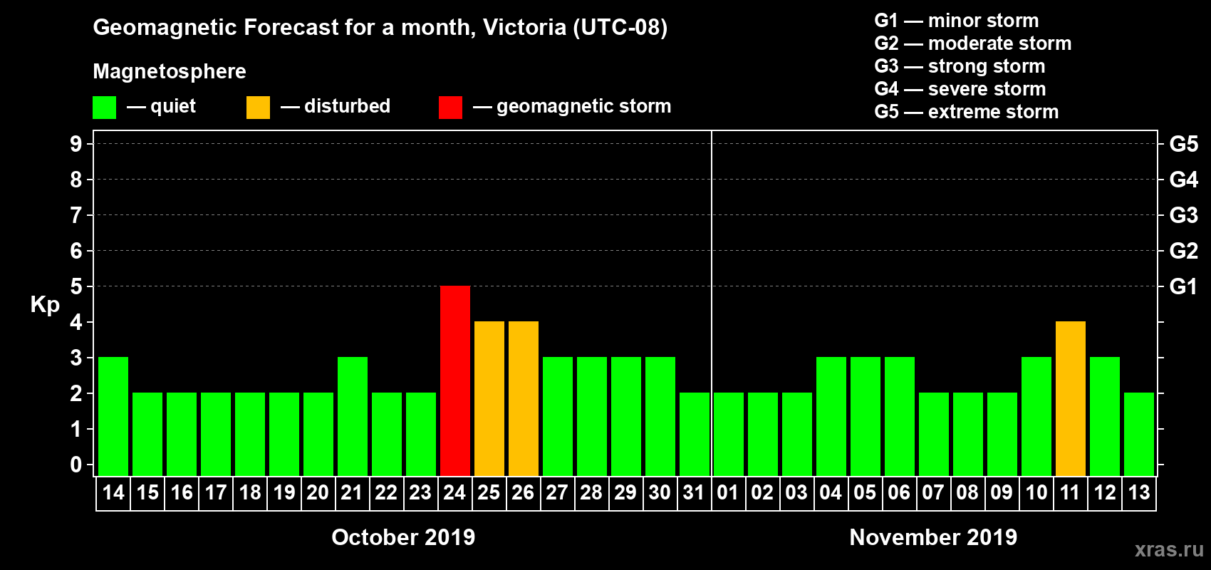 Geomagnetic storm forecast in Victoria for Oct 14, 2019