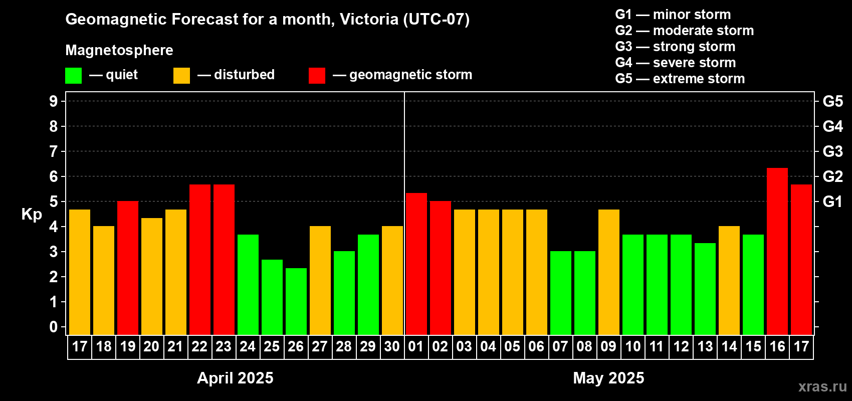 Geomagnetic storm forecast in Victoria for Apr 17, 2025