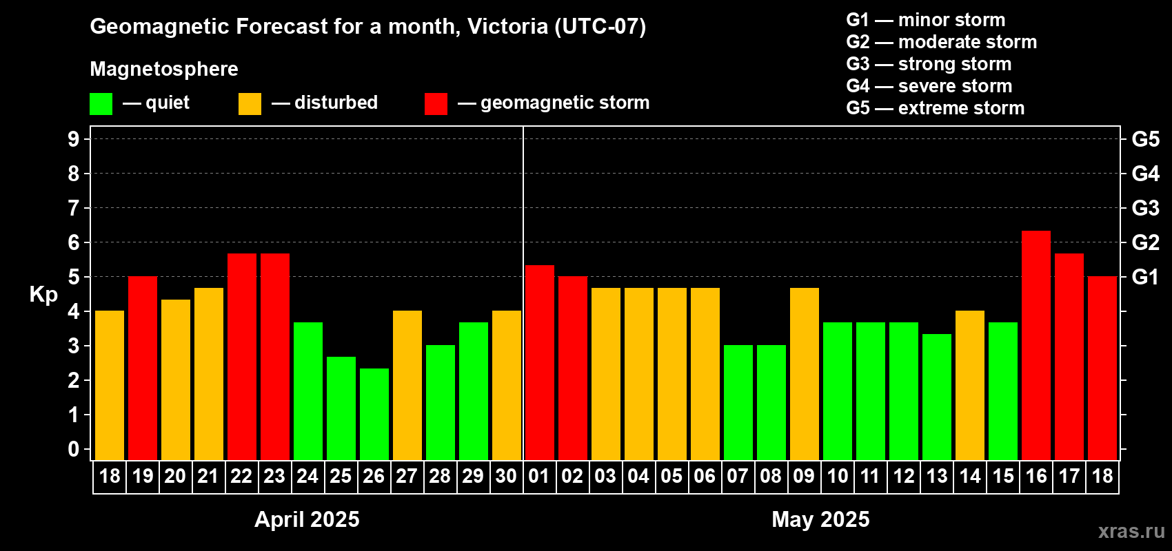 Geomagnetic storm forecast in Victoria for Apr 18, 2025