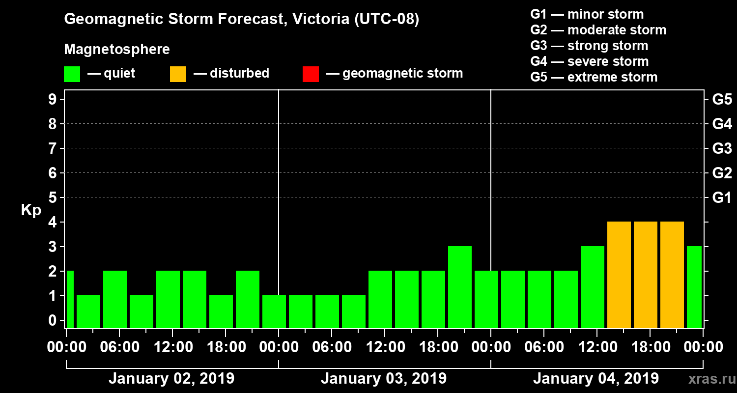 Geomagnetic storm forecast in Victoria for Jan 02, 2019