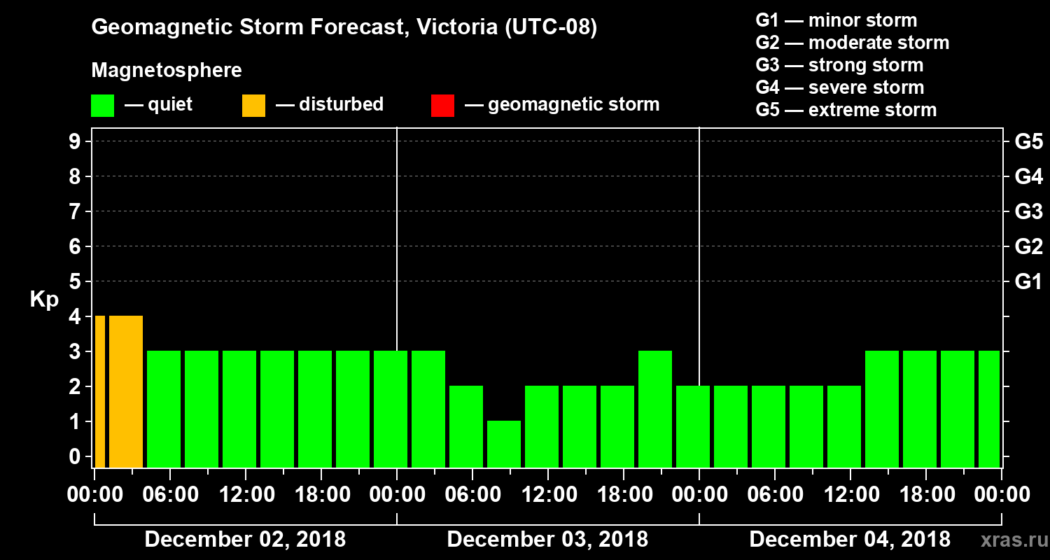 Geomagnetic storm forecast in Victoria for Dec 02, 2018