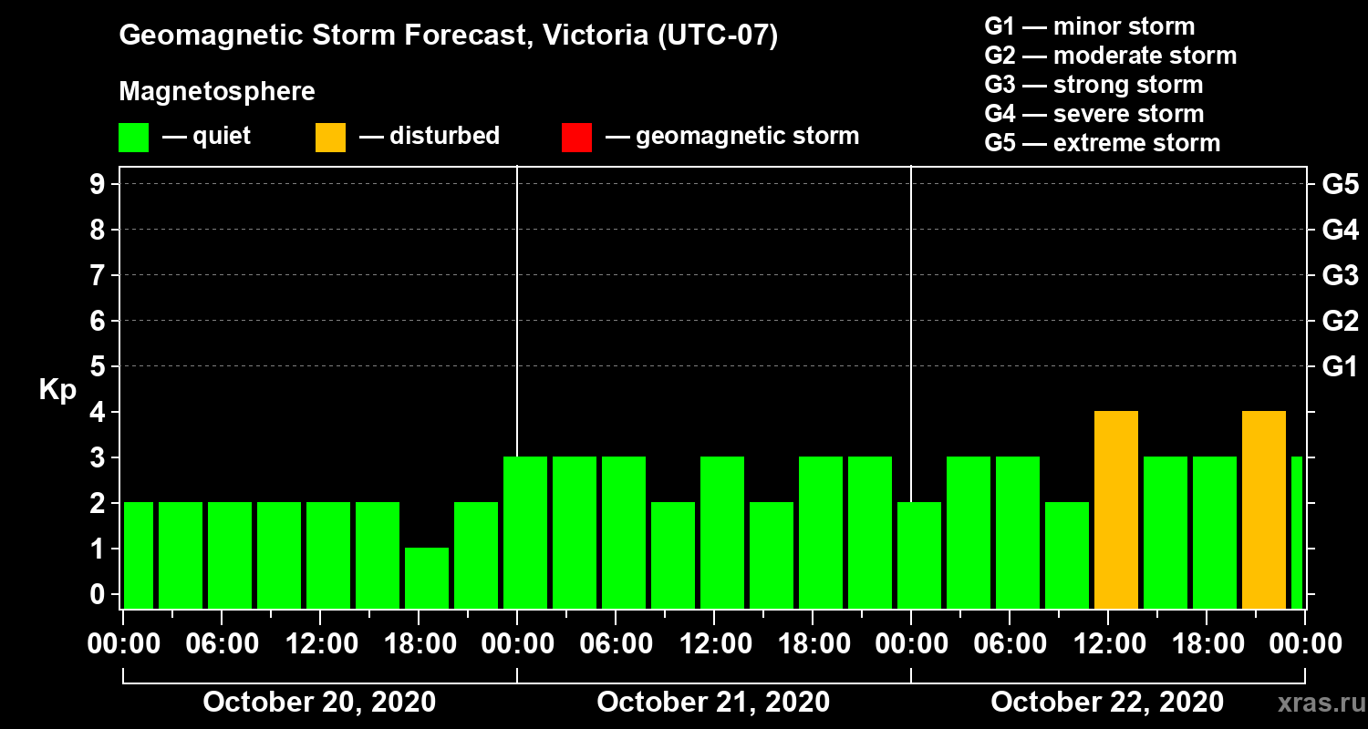 Geomagnetic storm forecast in Victoria for Oct 20, 2020
