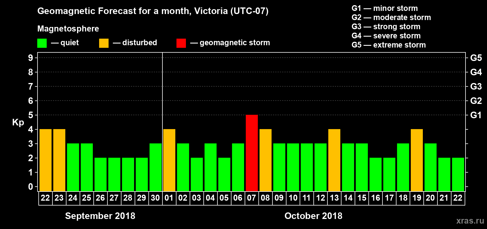 Geomagnetic storm forecast in Victoria for Sep 22, 2018