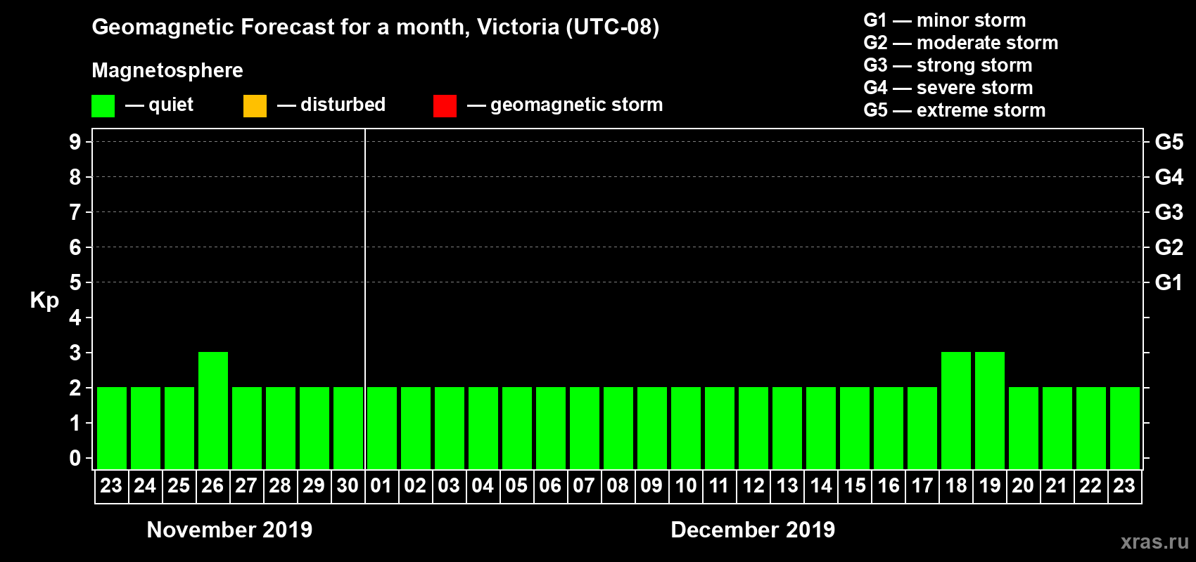 Geomagnetic storm forecast in Victoria for Nov 23, 2019