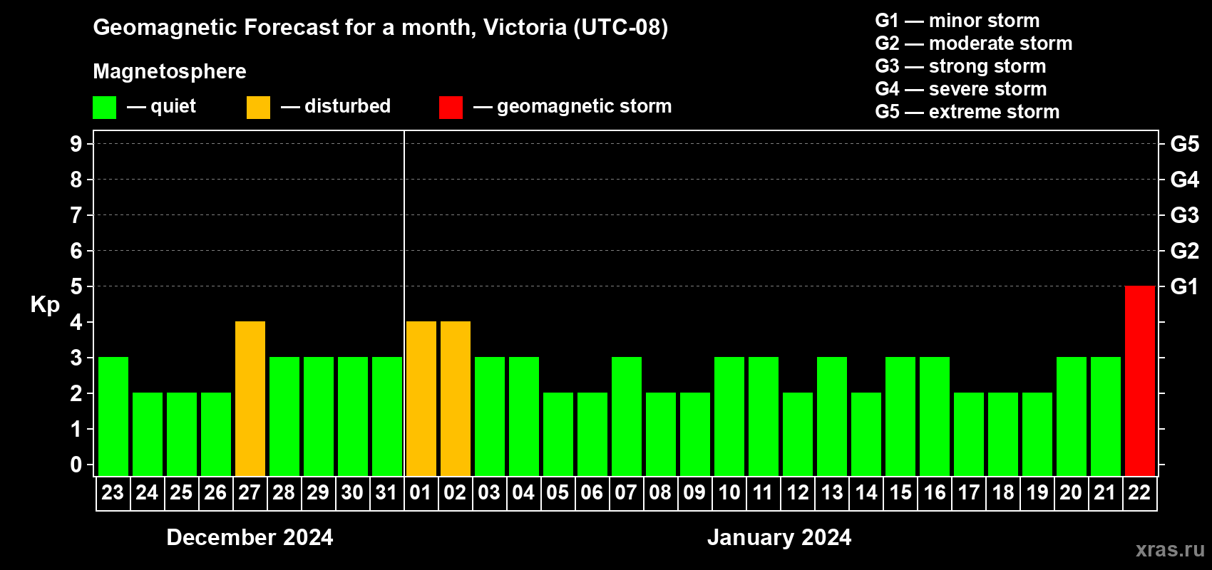 Geomagnetic storm forecast in Victoria for Dec 23, 2023