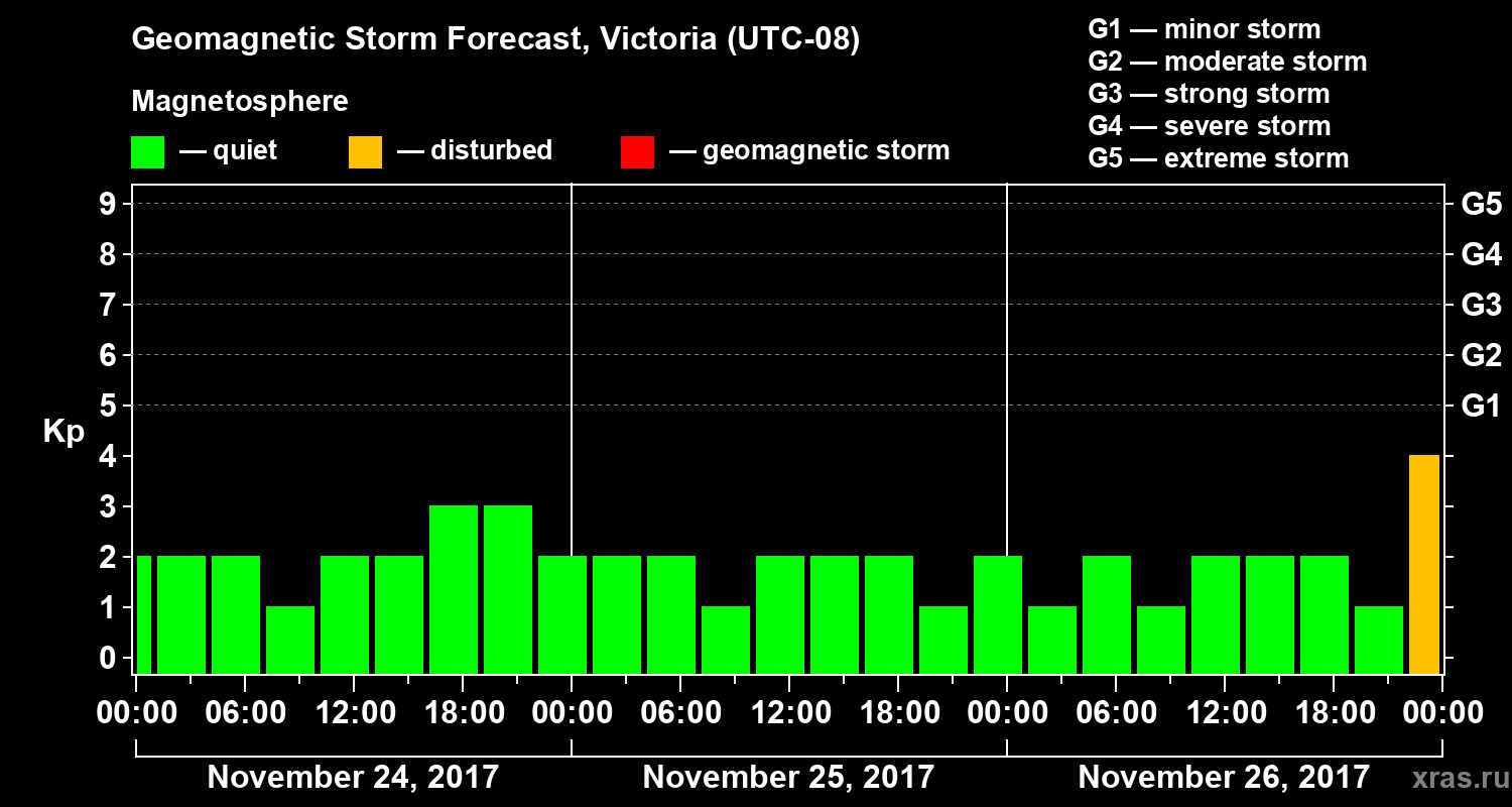 Geomagnetic storm forecast in Victoria for Nov 24, 2017