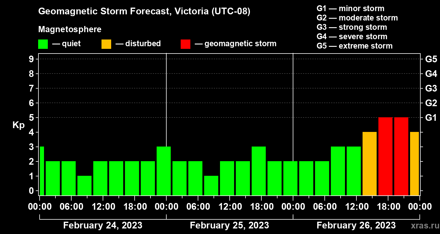Geomagnetic storm forecast in Victoria for Feb 24, 2023