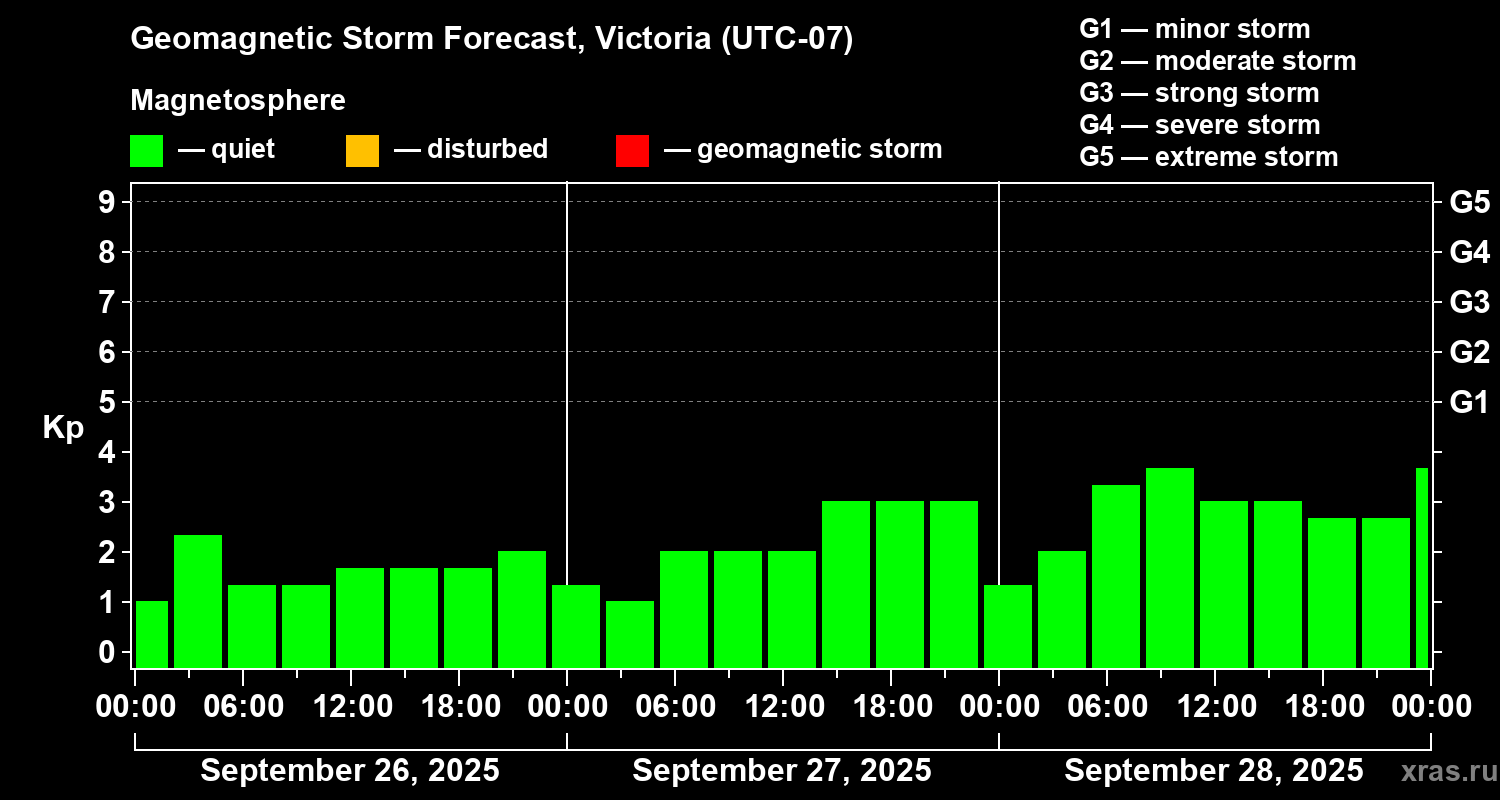 Geomagnetic storm forecast in Victoria for Sep 26, 2025