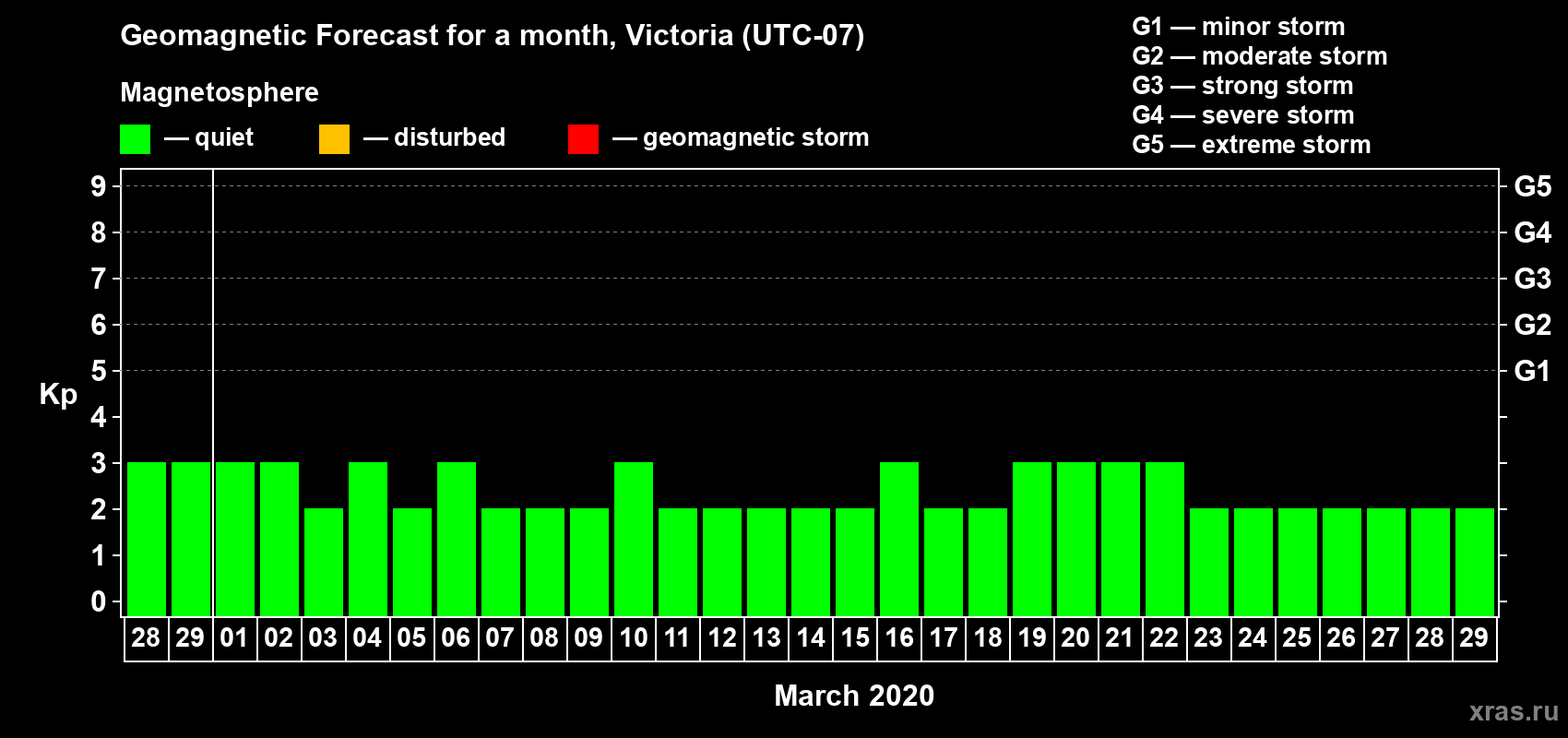 Geomagnetic storm forecast in Victoria for Feb 28, 2020