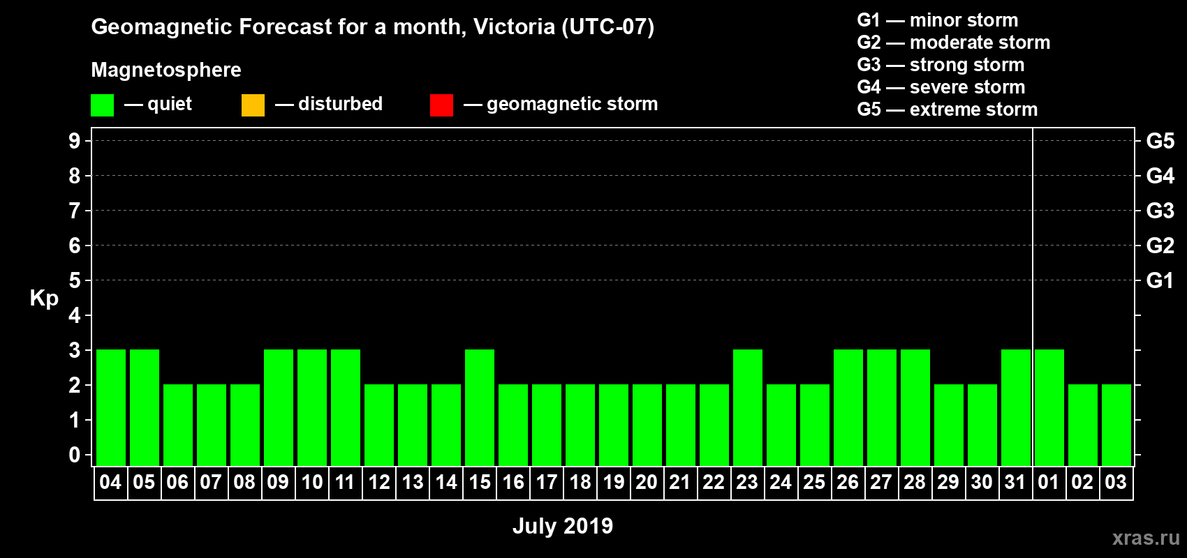 Geomagnetic storm forecast in Victoria for Jul 04, 2019