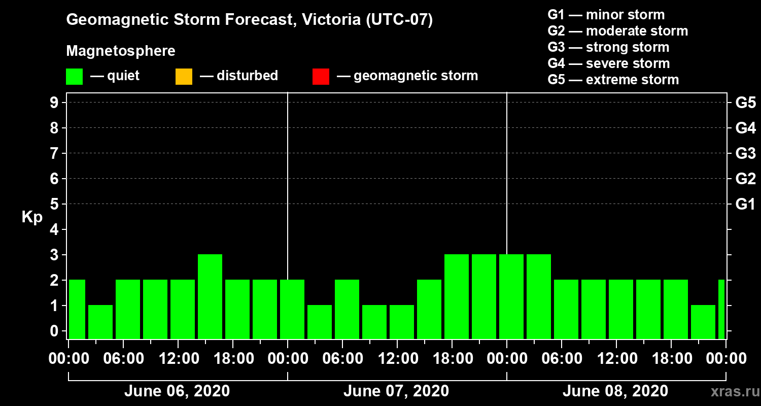 Geomagnetic storm forecast in Victoria for Jun 06, 2020