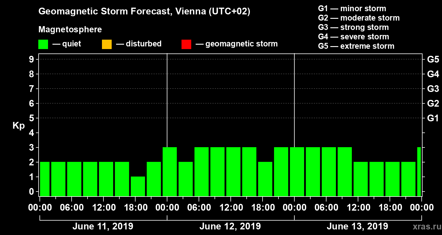 Geomagnetic storm forecast in Vienna for Jun 11, 2019