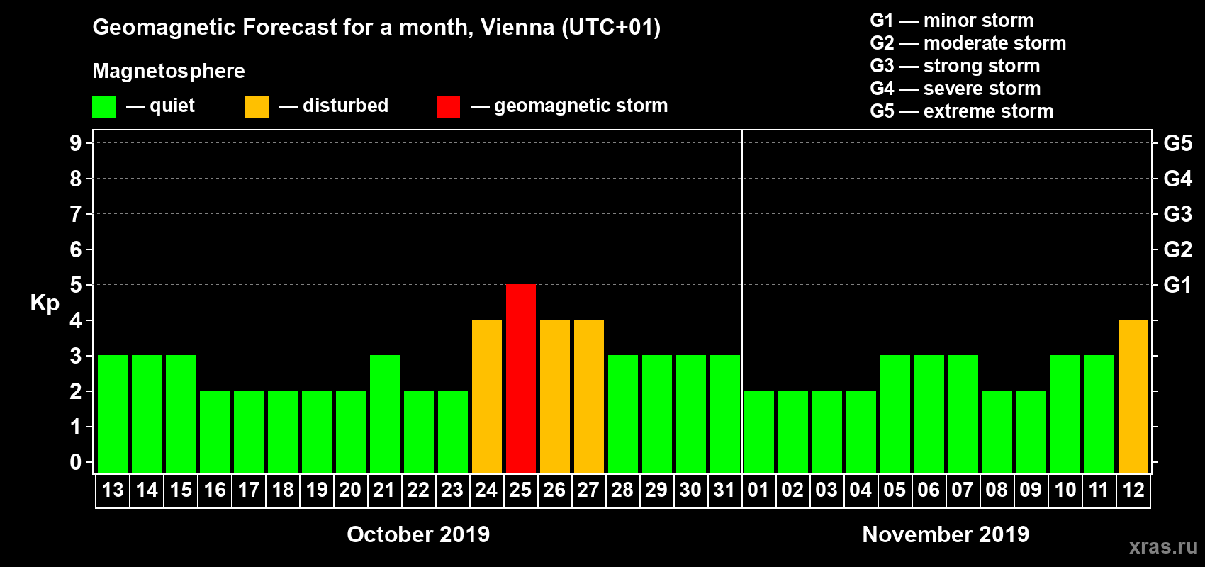 Geomagnetic storm forecast in Vienna for Oct 13, 2019