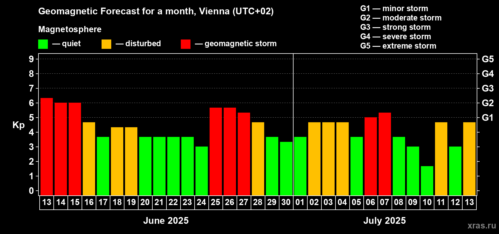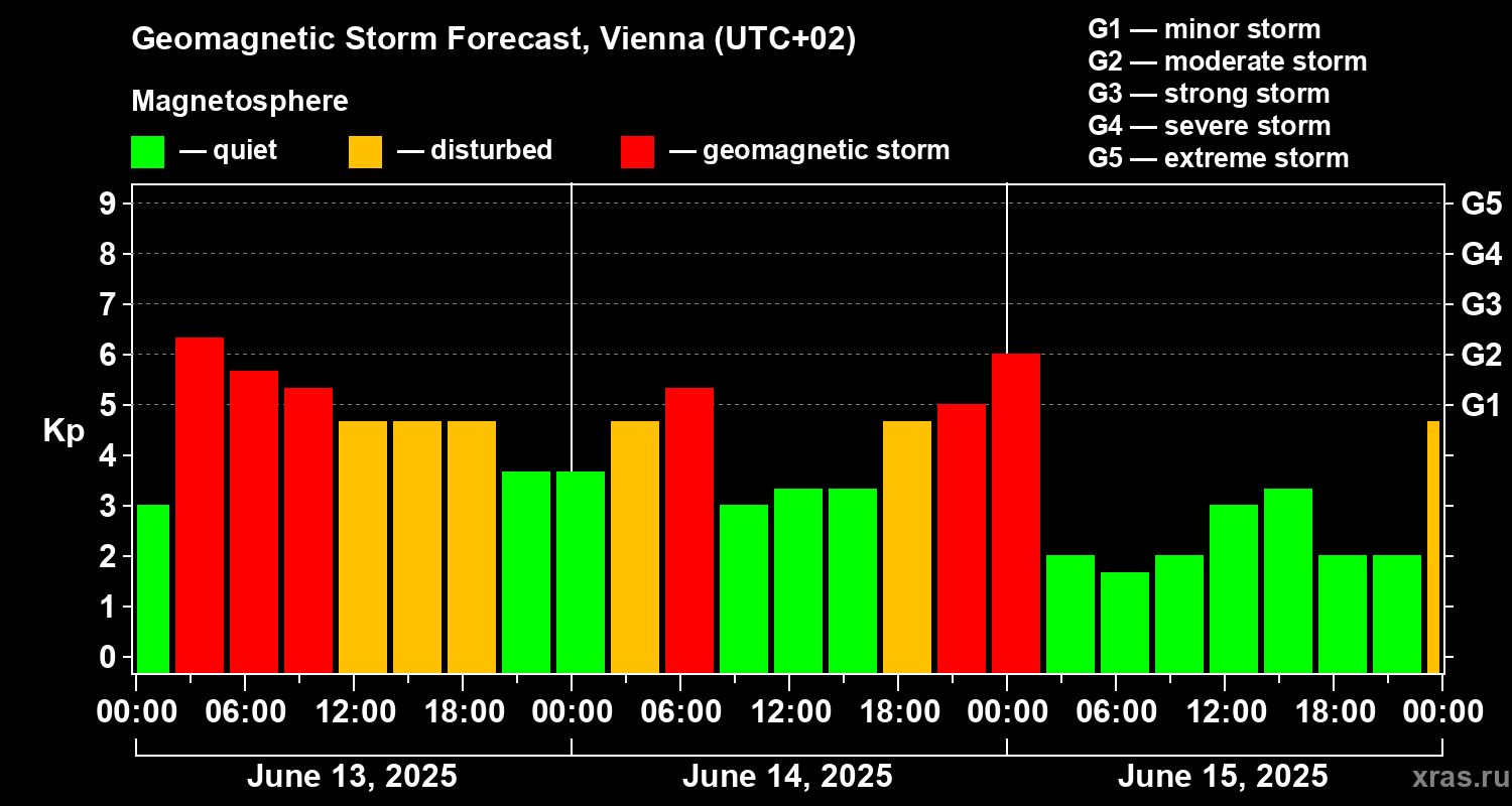 Geomagnetic storm forecast in Vienna for Jun 13, 2025