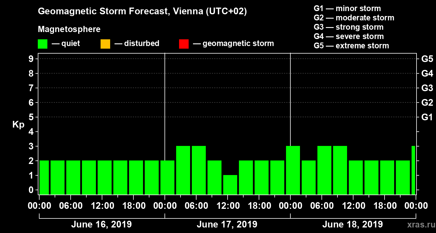 Geomagnetic storm forecast in Vienna for Jun 16, 2019