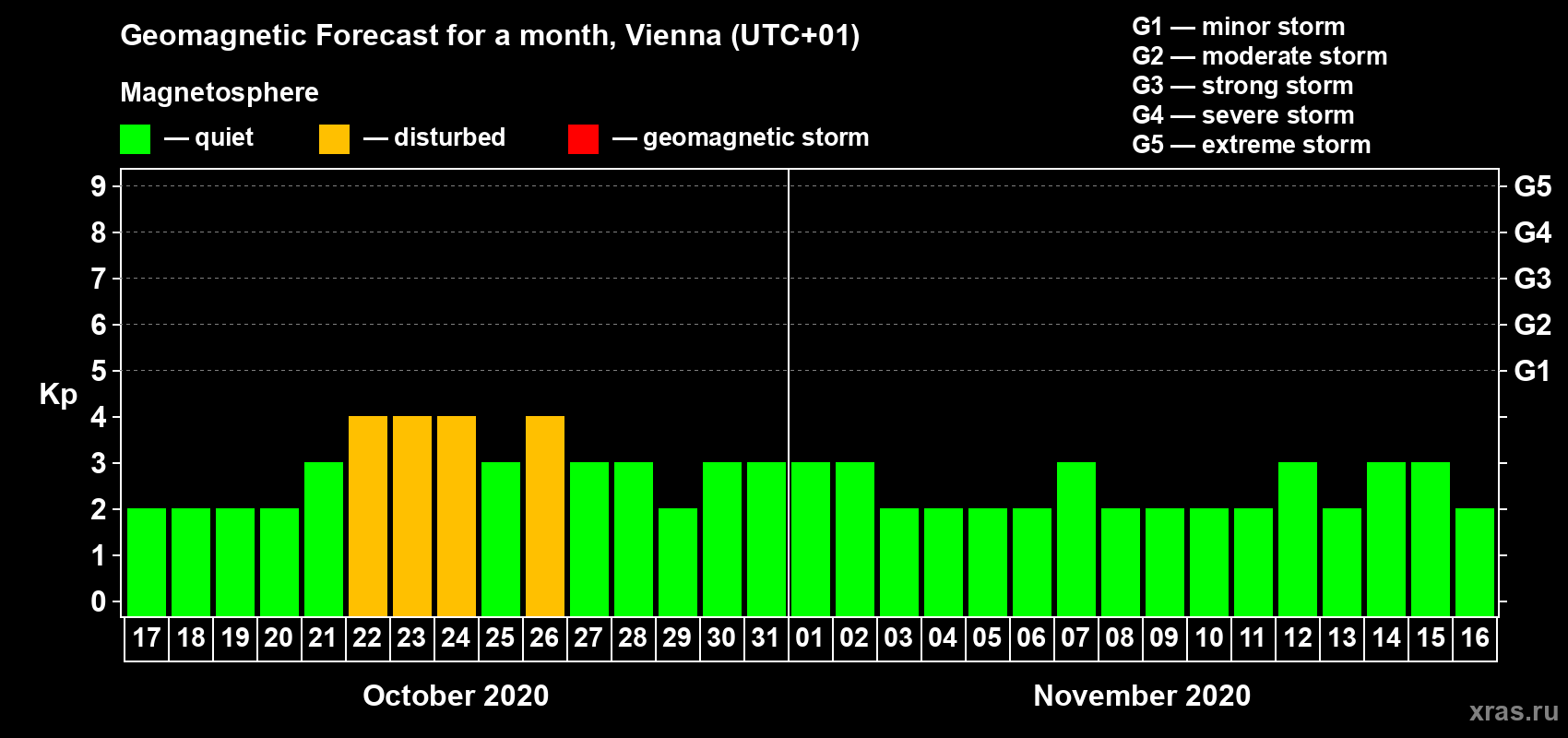 Geomagnetic storm forecast in Vienna for Oct 17, 2020