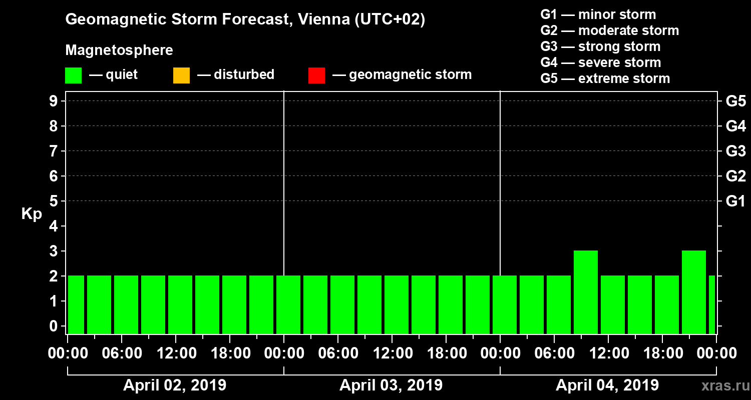 Geomagnetic storm forecast in Vienna for Apr 02, 2019