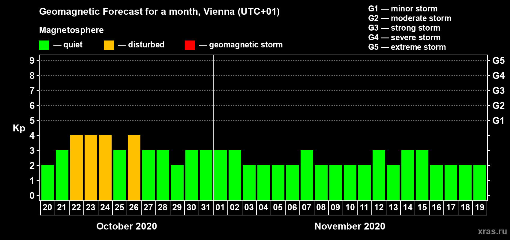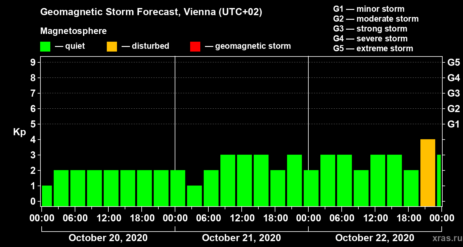 Geomagnetic storm forecast in Vienna for Oct 20, 2020