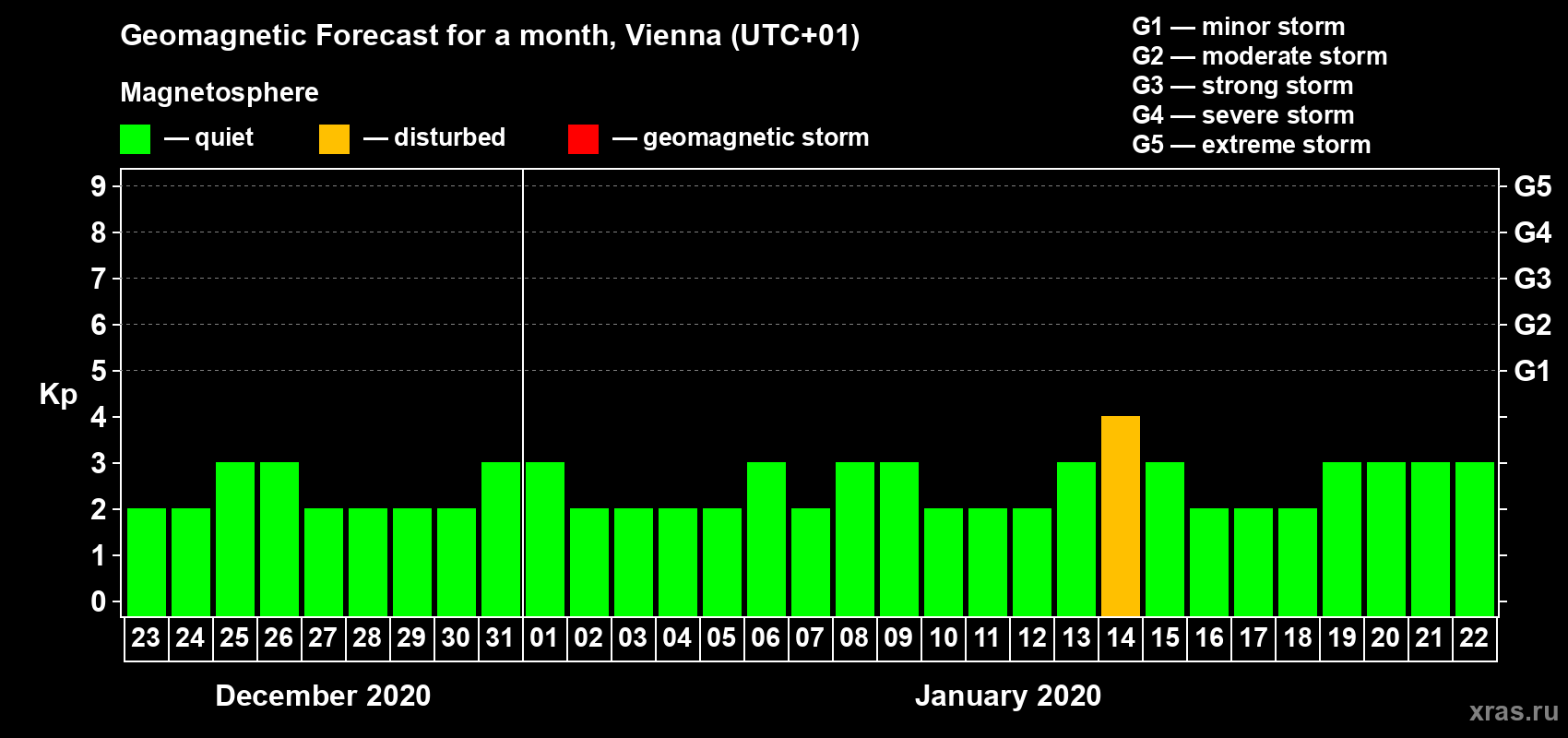 Geomagnetic storm forecast in Vienna for Dec 23, 2019