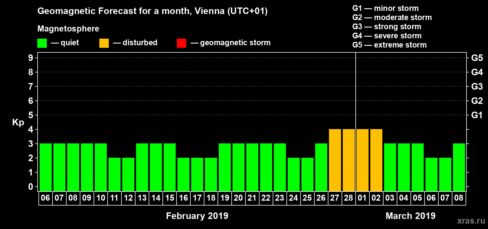 Geomagnetic storm forecast in Vienna for Feb 06, 2019