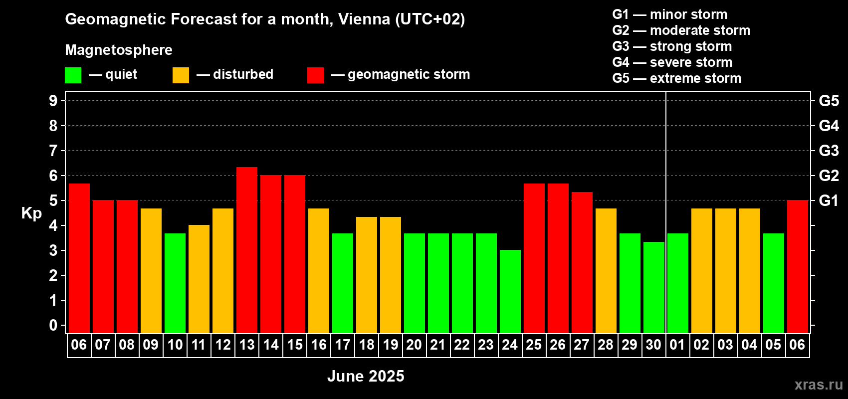 Geomagnetic storm forecast in Vienna for Jun 06, 2025