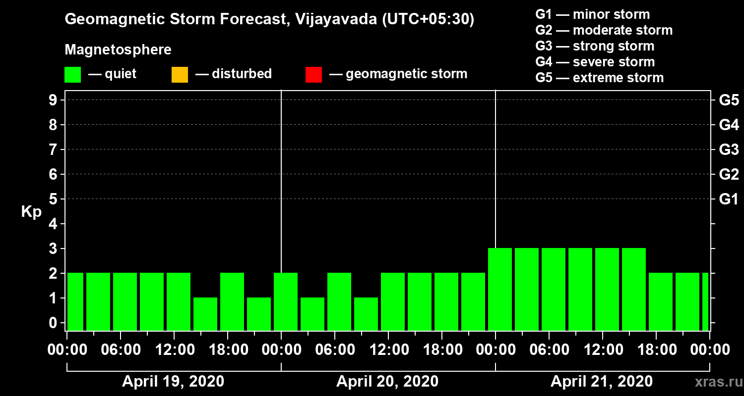 Geomagnetic storm forecast in Vijayavada for Apr 19, 2020