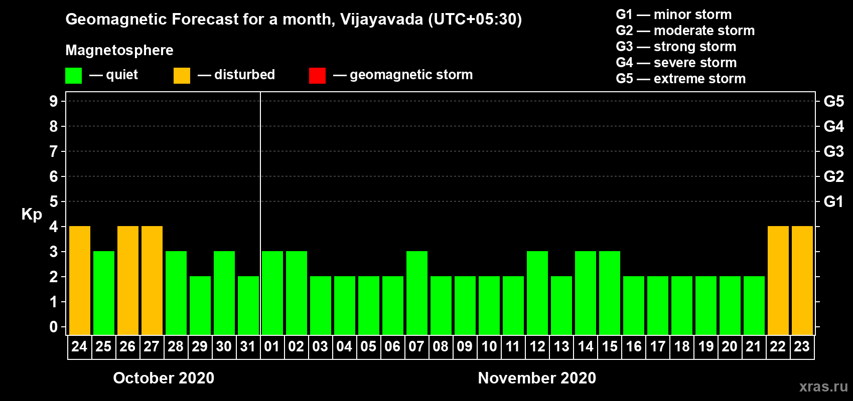 Geomagnetic activity forecast in Vijayavada — Oct 24, 2020