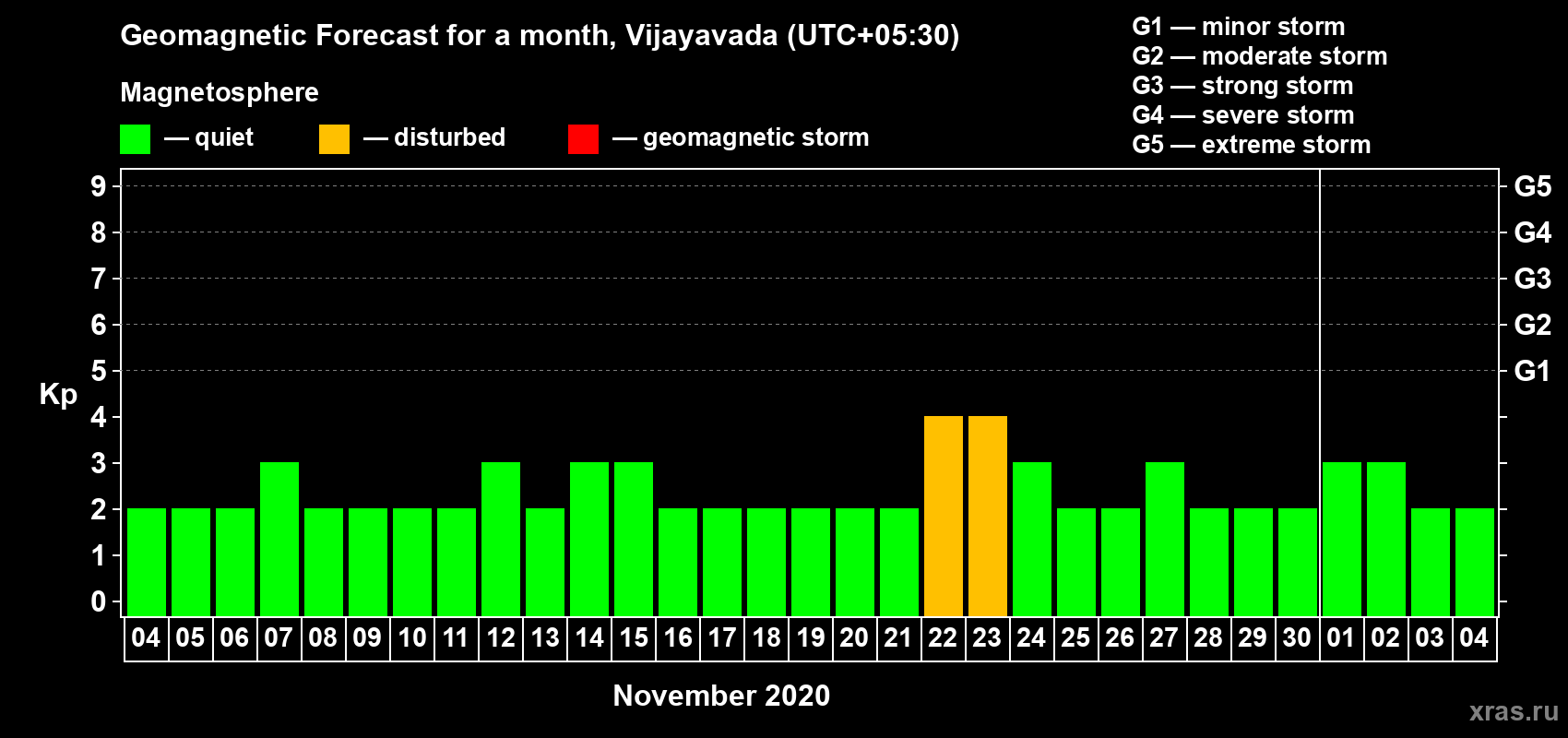 Geomagnetic activity forecast in Vijayavada — Nov 04, 2020