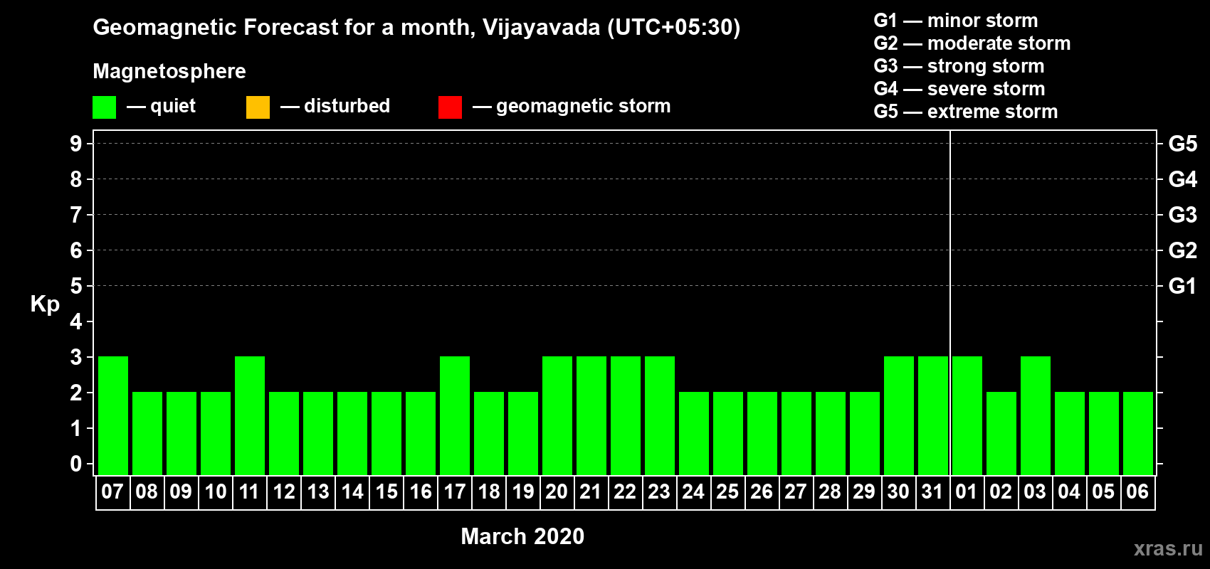 Geomagnetic storm forecast in Vijayavada for Mar 07, 2020