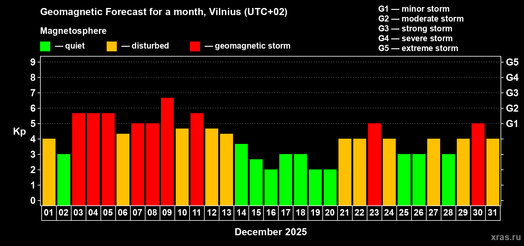 Geomagnetic storm forecast in Vilnius for Dec 01, 2025