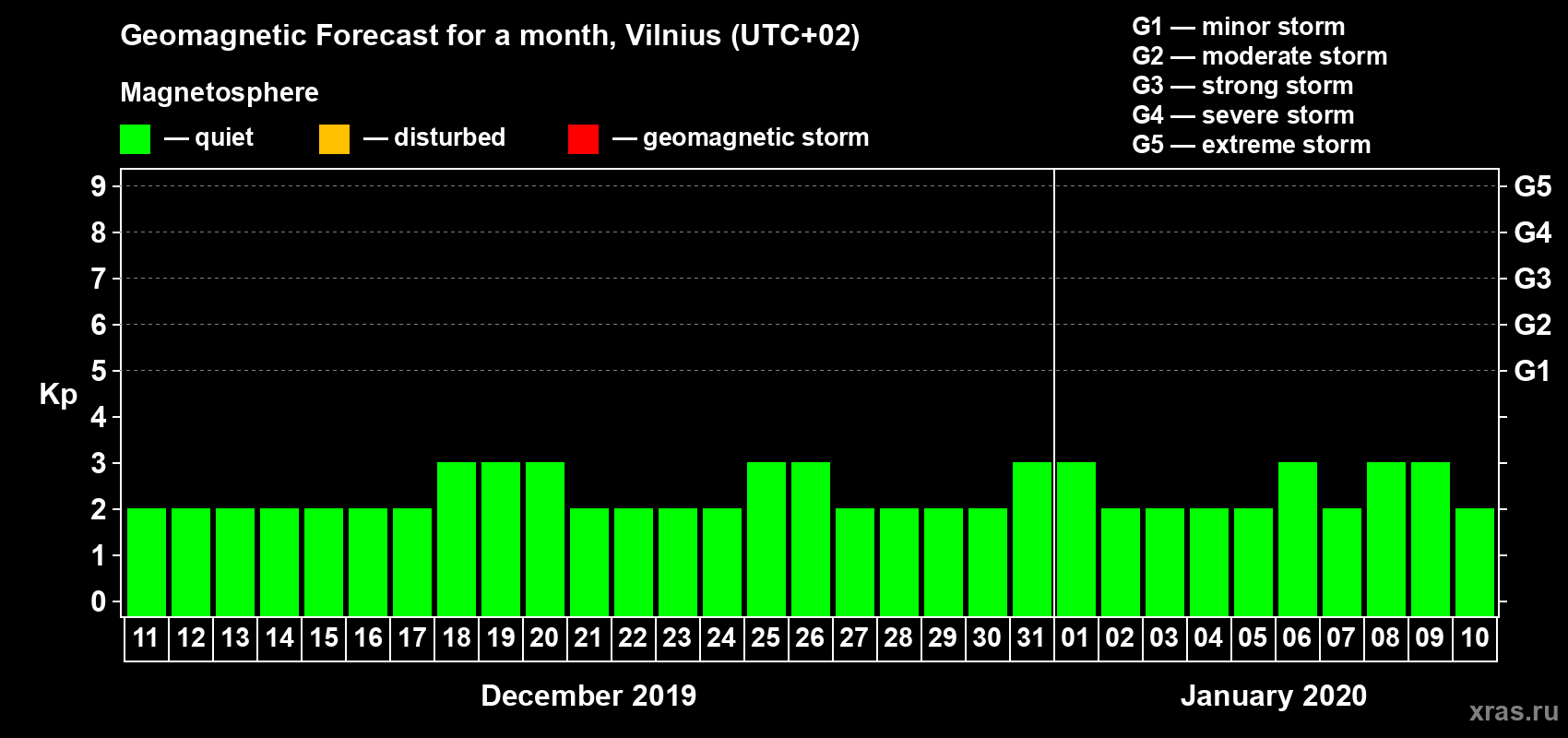 Geomagnetic storm forecast in Vilnius for Dec 11, 2019