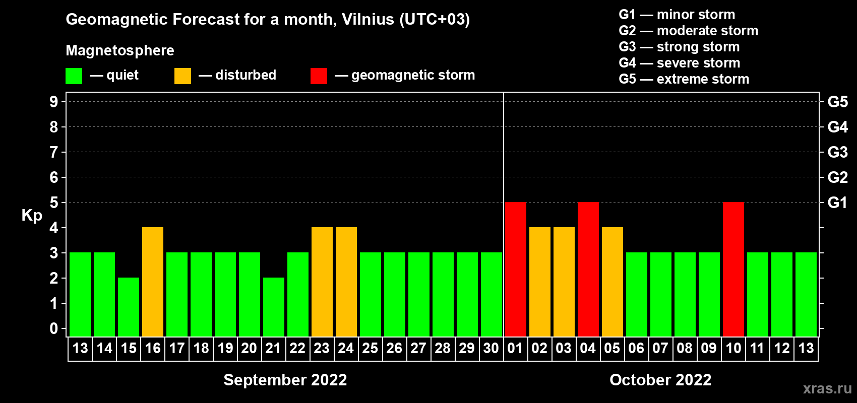Geomagnetic activity forecast in Vilnius — Sep 13, 2022