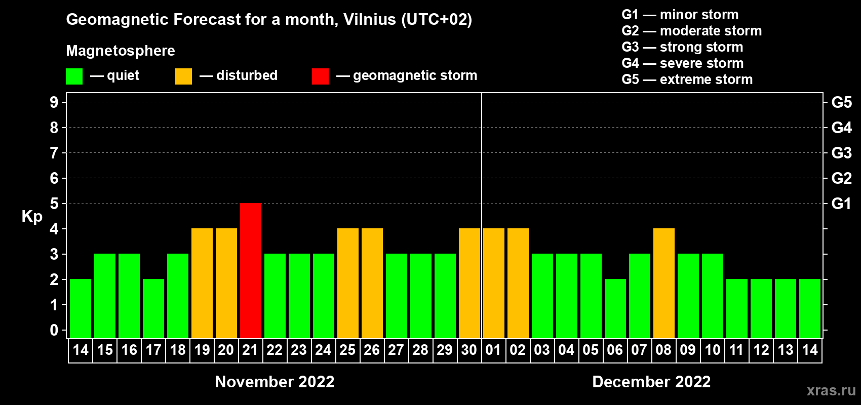 Geomagnetic storm forecast in Vilnius for Nov 14, 2022