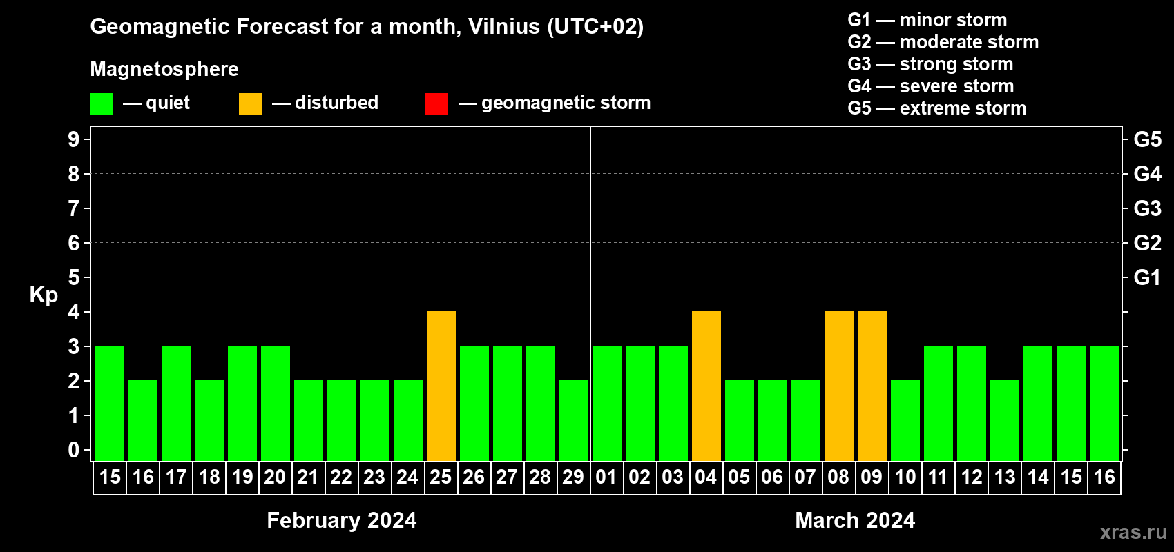 Geomagnetic storm forecast in Vilnius for Feb 15, 2024