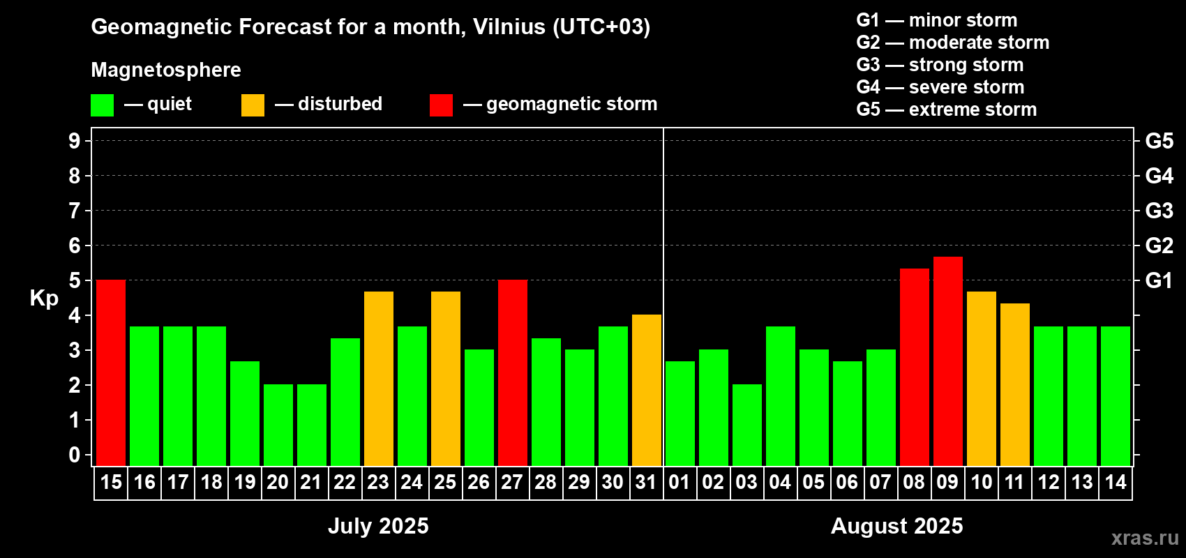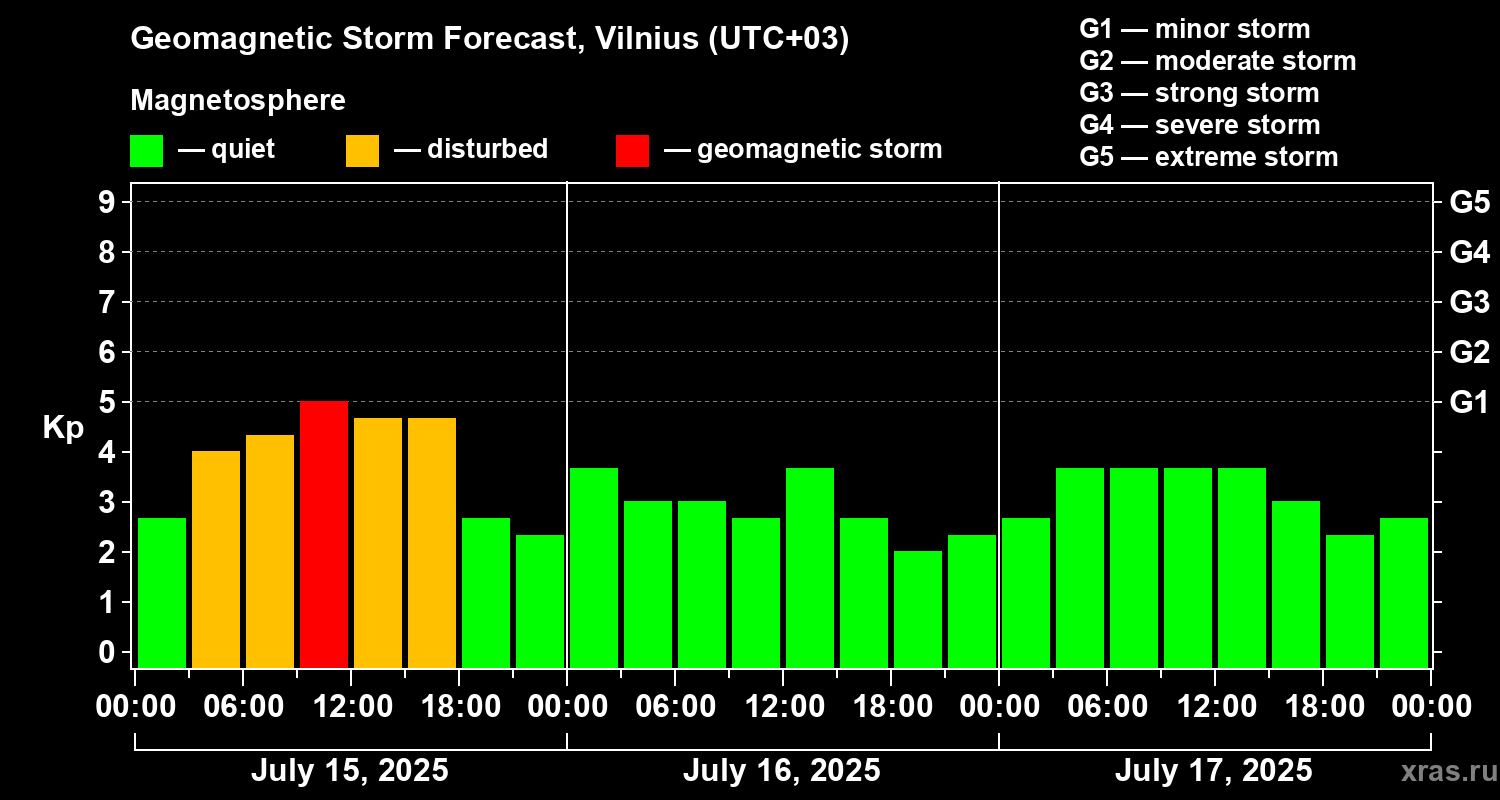 Geomagnetic storm forecast in Vilnius for Jul 15, 2025