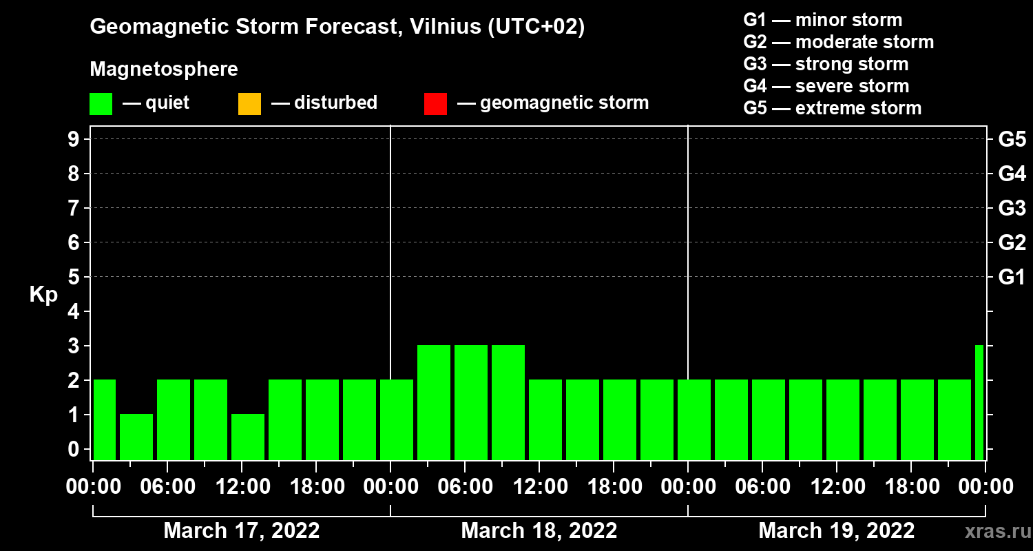 Geomagnetic activity forecast in Vilnius — Mar 17, 2022