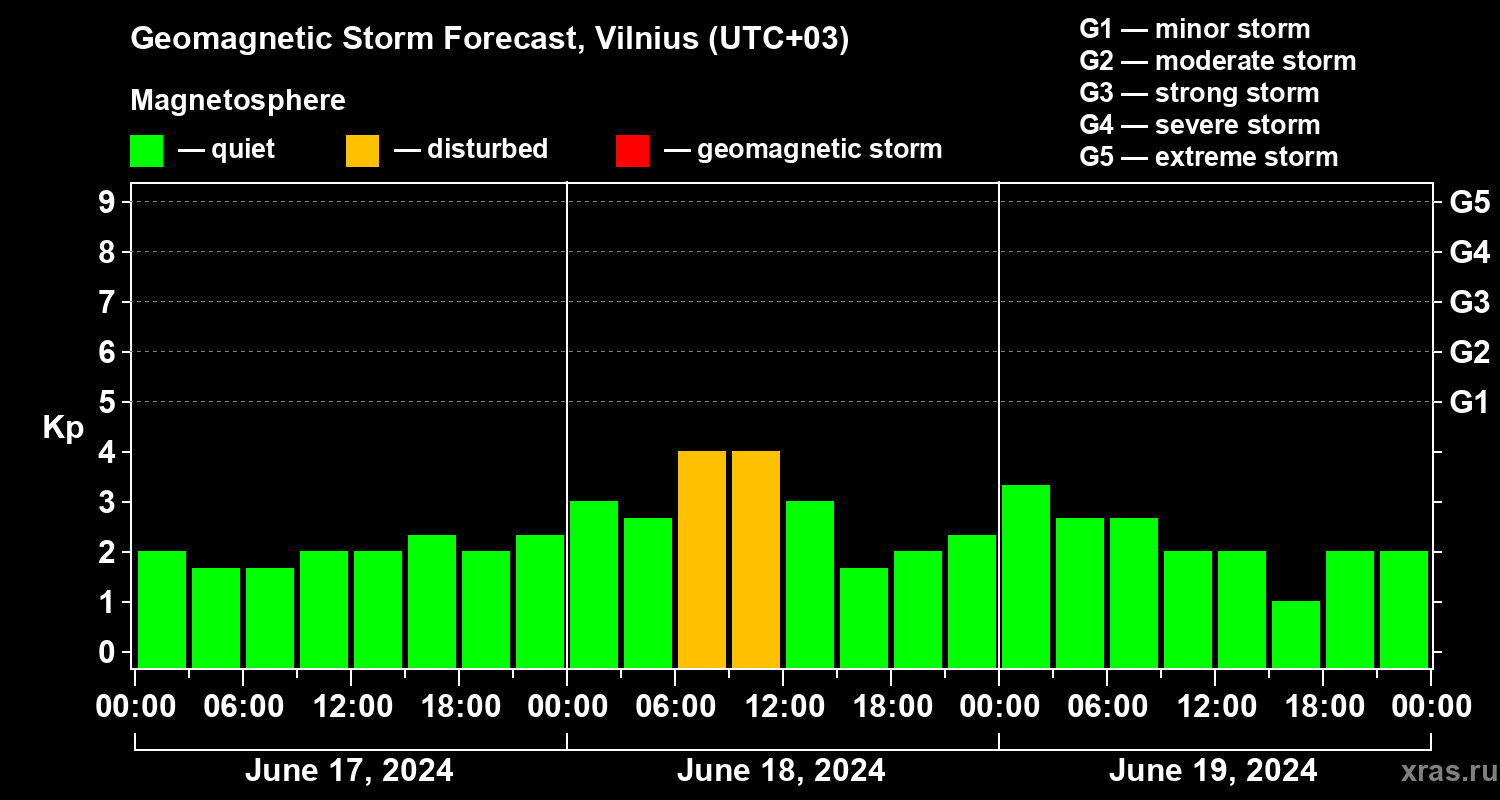 Geomagnetic storm forecast in Vilnius for Jun 17, 2024