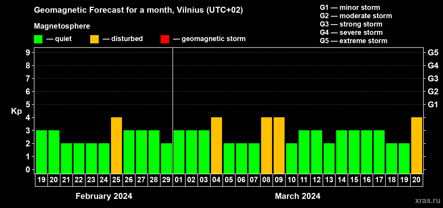 Geomagnetic storm forecast in Vilnius for Feb 19, 2024