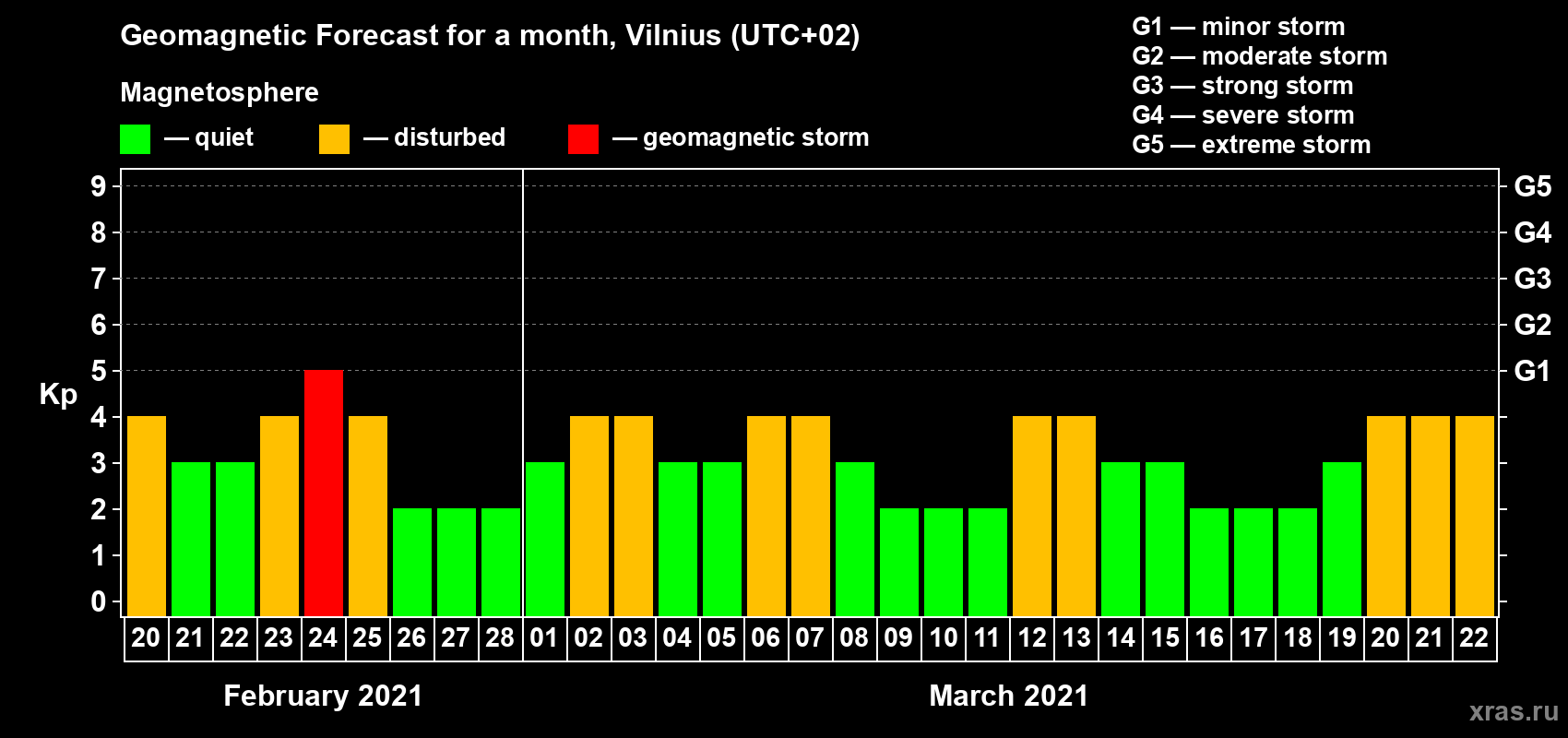Geomagnetic storm forecast in Vilnius for Feb 20, 2021