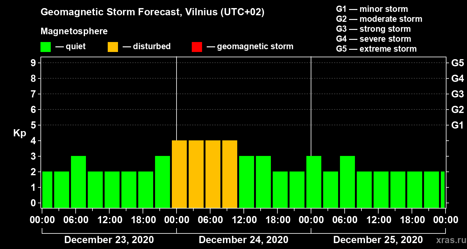 Geomagnetic storm forecast in Vilnius for Dec 23, 2020