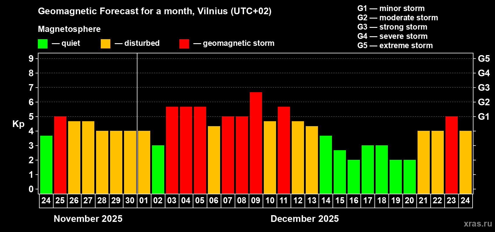 Geomagnetic storm forecast in Vilnius for Nov 24, 2025