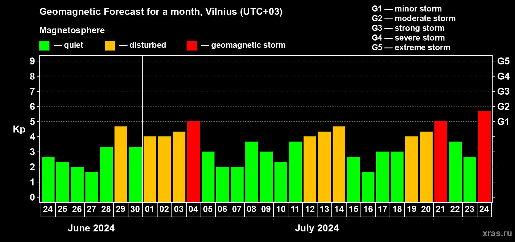 Geomagnetic storm forecast in Vilnius for Jun 24, 2024