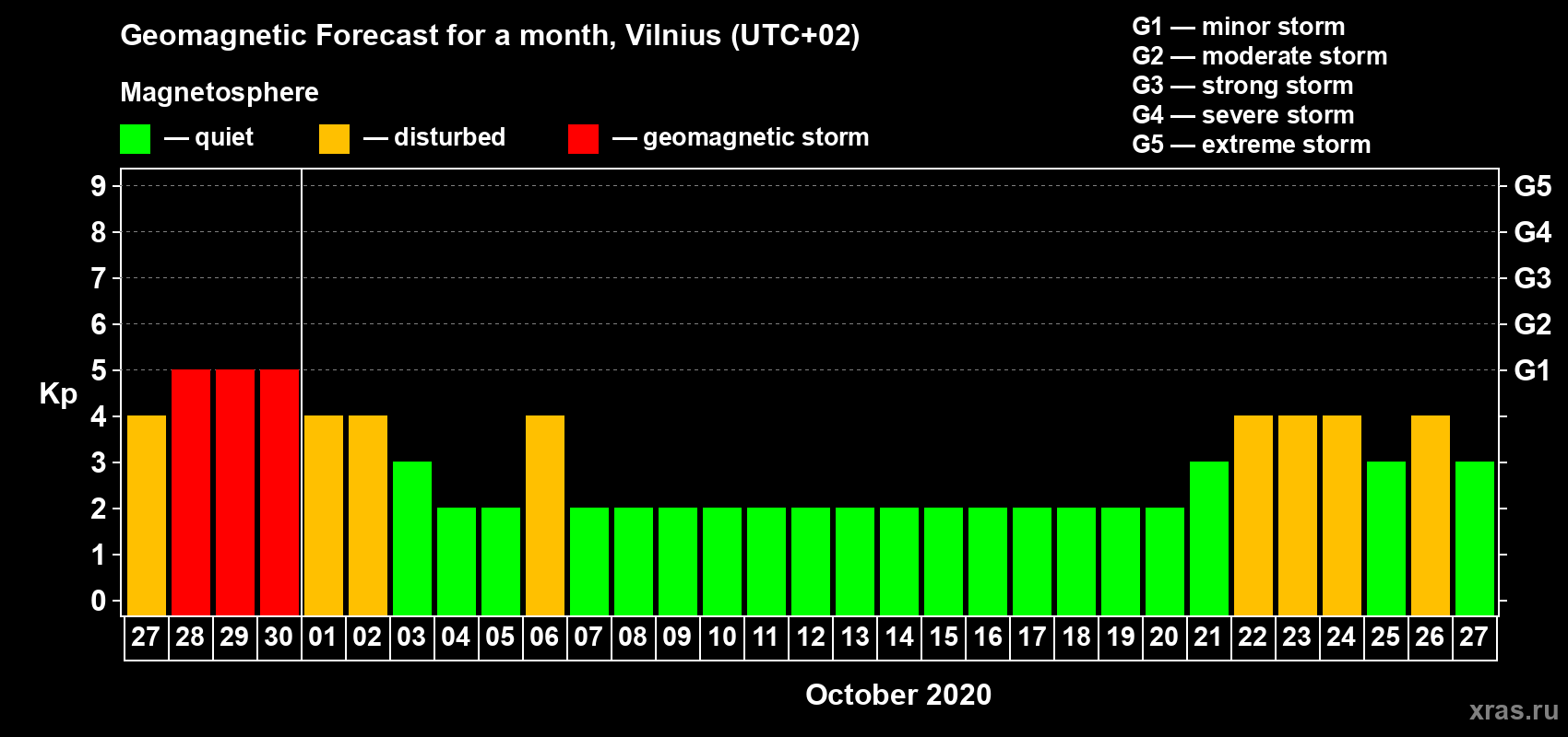 Geomagnetic activity forecast in Vilnius — Sep 27, 2020