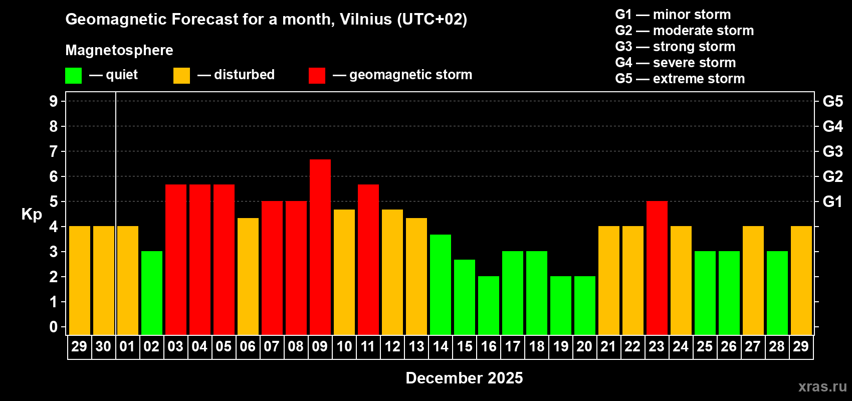 Geomagnetic storm forecast in Vilnius for Nov 29, 2025