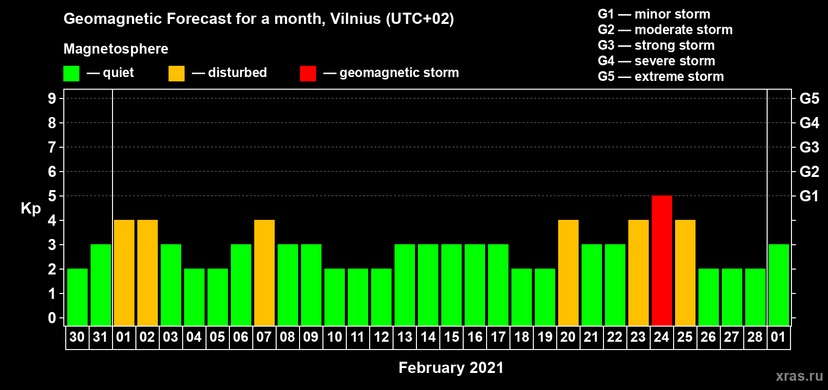 Geomagnetic storm forecast in Vilnius for Jan 30, 2021