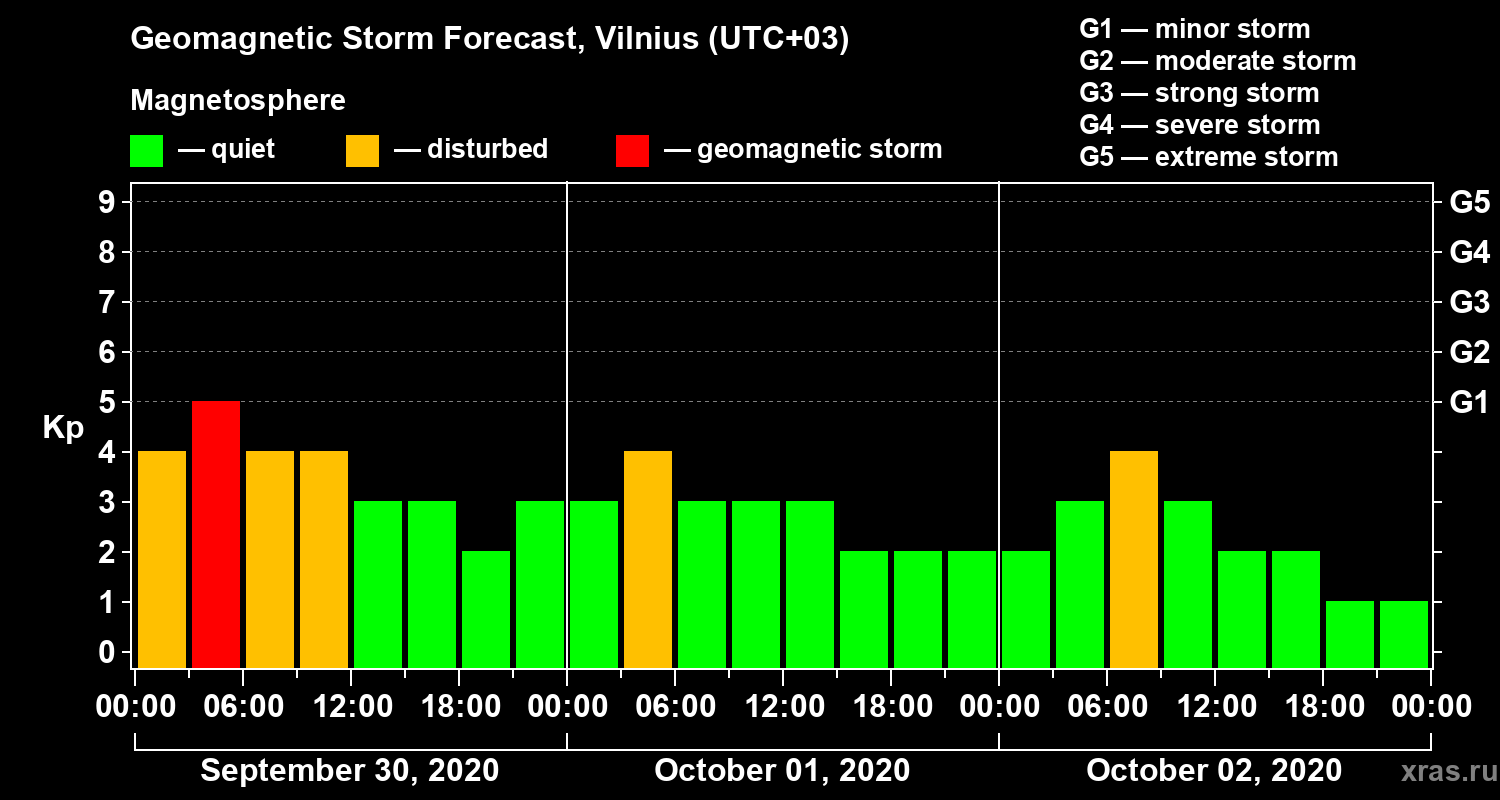 Geomagnetic activity forecast in Vilnius — Sep 30, 2020