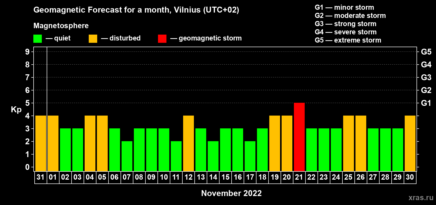 Geomagnetic storm forecast in Vilnius for Oct 31, 2022