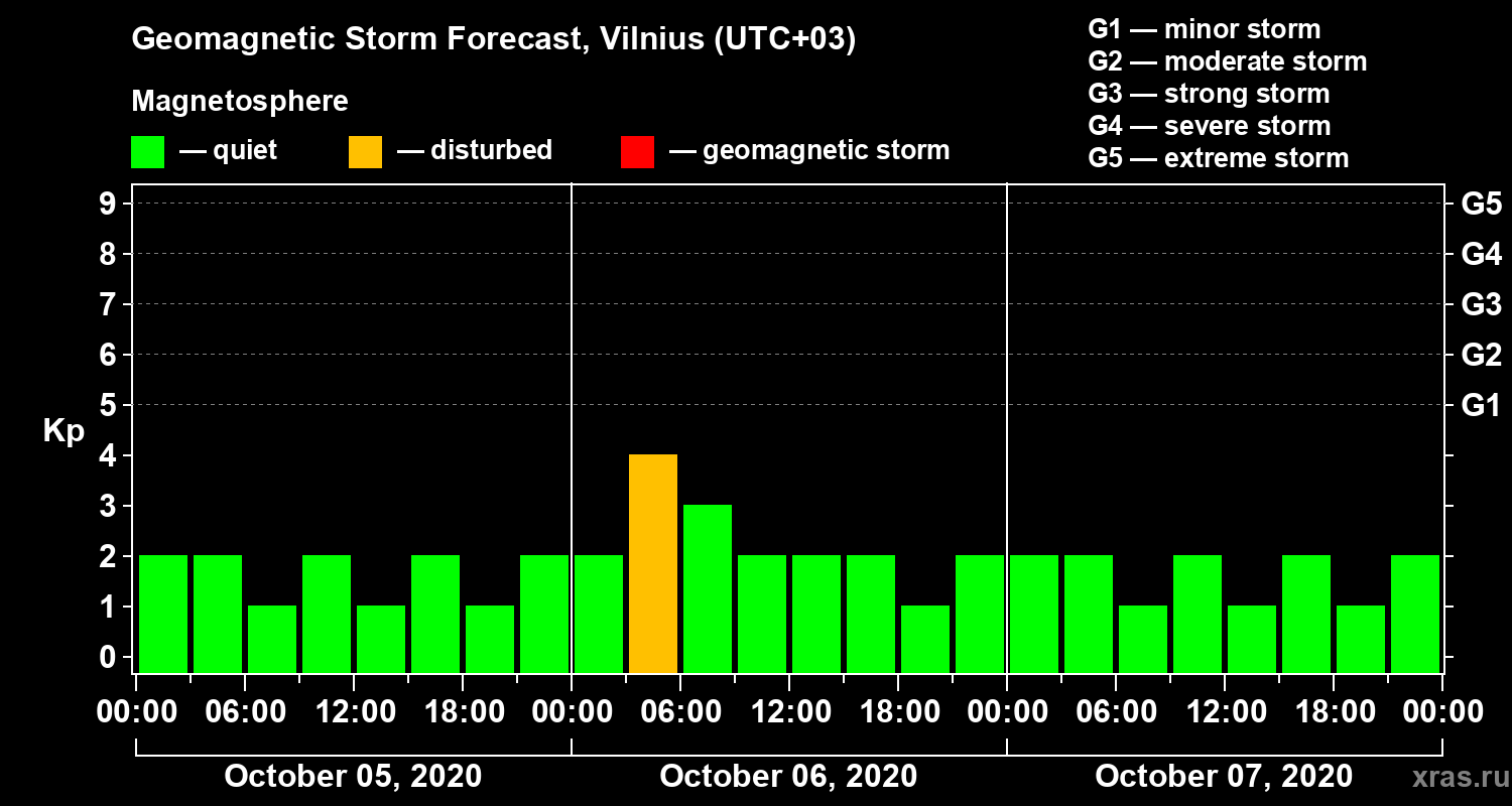 Geomagnetic activity forecast in Vilnius — Oct 05, 2020