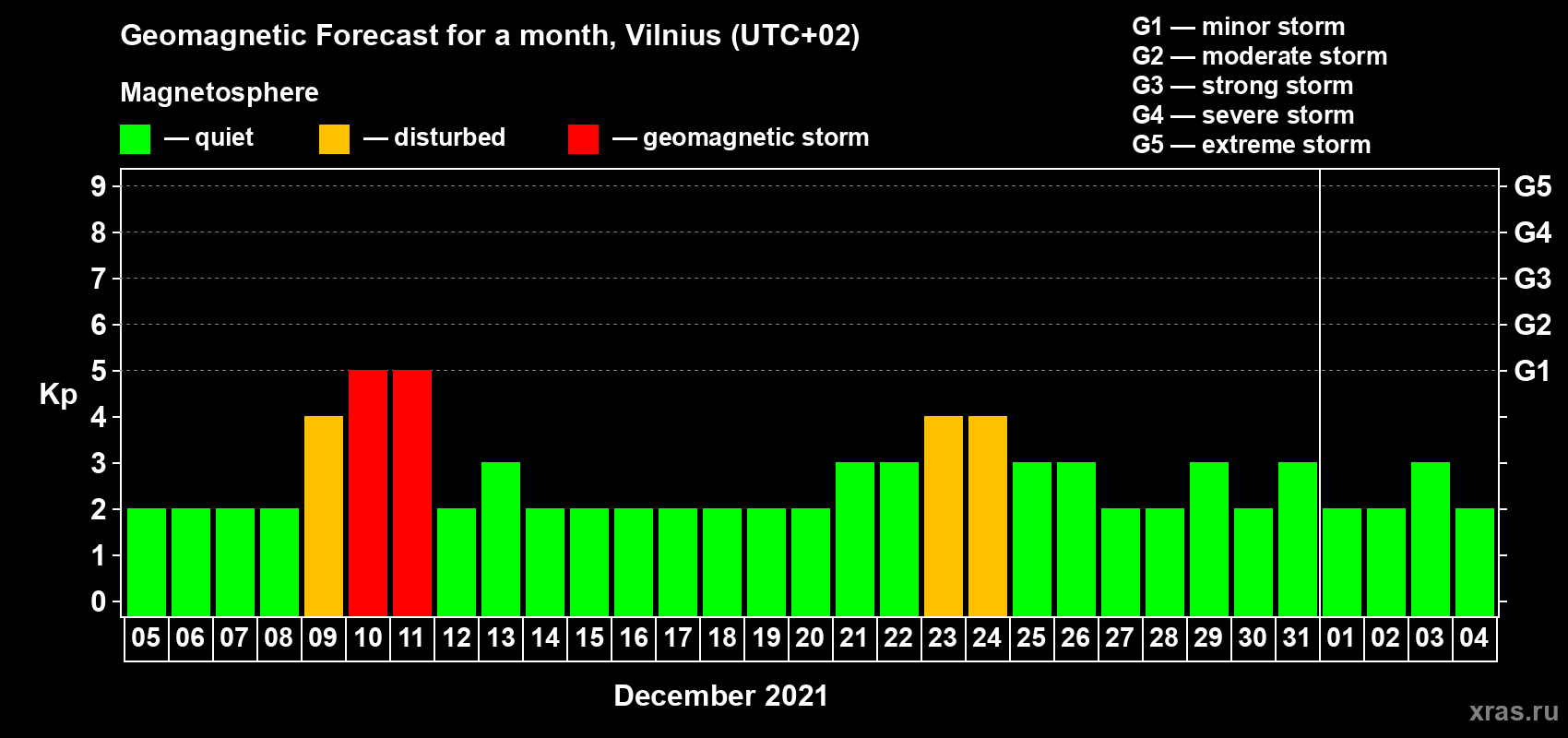 Geomagnetic activity forecast in Vilnius — Dec 05, 2020